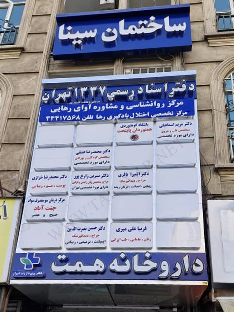 تابلو ساختمان پزشکان سینا - کامپوزیت و باکس لبه چلنیوم - حروف برجسته